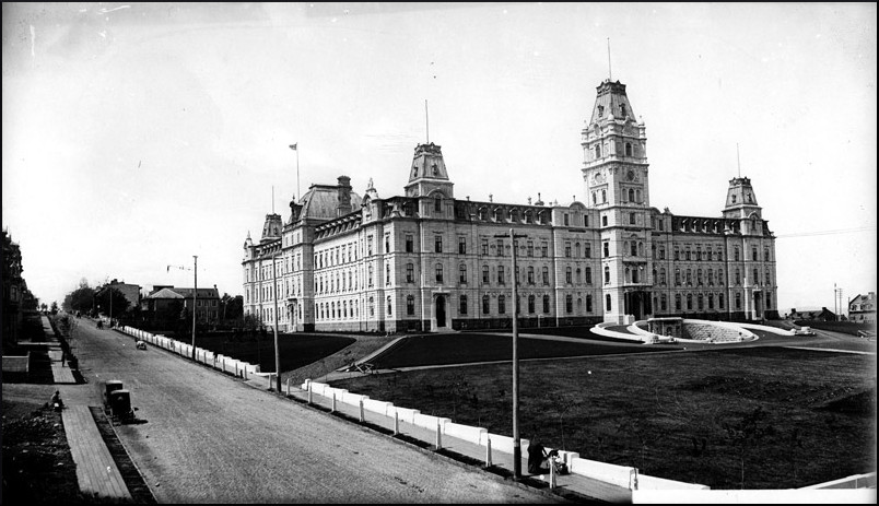 En 1867, l’Assemblée législative de la province de Québec s’installe dans l’ancien parlement de la province du Canada situé au sommet de la côte de la Montagne (aujourd’hui le parc Montmorency). D’aspect sobre, cet immeuble de briques a été bâti en 1859-1860 avec des moyens limités : les deux Chambres de la législature y ont été installées jusqu’en 1865. À la fin de la décennie, des plaintes s’élèvent contre l’exiguïté des lieux. Pour y remédier, le gouvernement propose, en 1869, de construire un édifice plus grand qui deviendra l’actuel parlement.