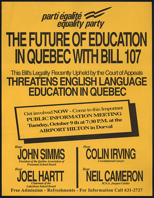Ce fonds témoigne de la carrière politique de Robert Libman, député de D'Arcy-McGee et chef du Parti Égalité pour les années 1989 à 1994, puis comme candidat indépendant dans la même circonscription en 1994. Le fonds rassemble des documents constitutifs; des documents promotionnels; de la correspondance; des publications, des communiqués et revues de presse; des textes d'interventions en Chambre et 4 photographies. On y trouve également le livre publié par Robert Libman en 1995 intitulé « Riding the rapids : the white-water rise and fall of Quebec's anglo protest ».