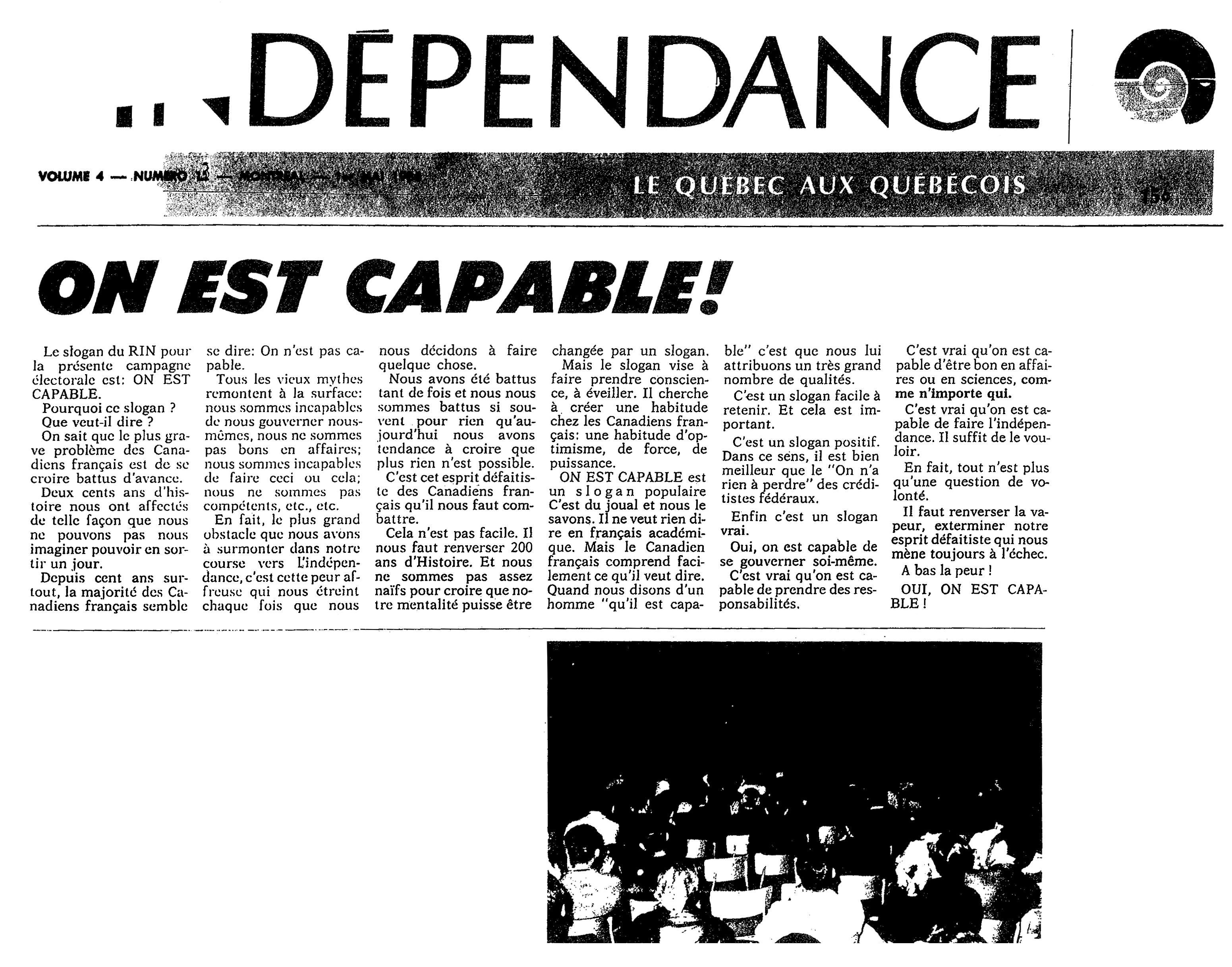 Le 26 octobre 1968, les délégués du Rassemblement pour l'indépendance nationale (RIN) adoptent la dissolution du parti.