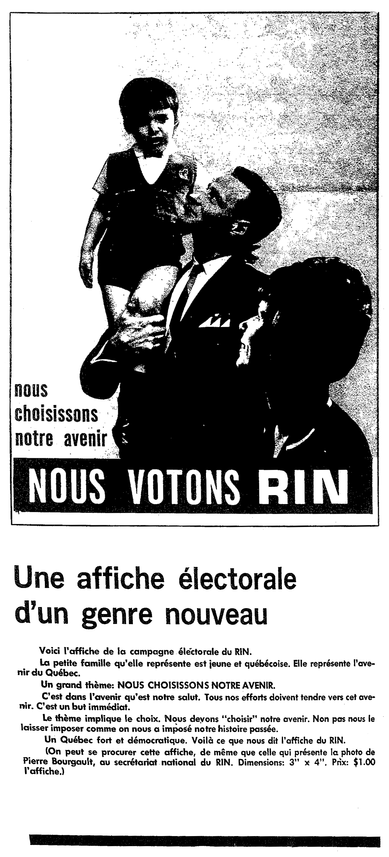 Source : Allemagne, André d'. Le R.I.N. de 1960 à 1963 : étude d'un groupe de pression au Québec. Montréal : Éditions l'Étincelle, 1974, p. 77